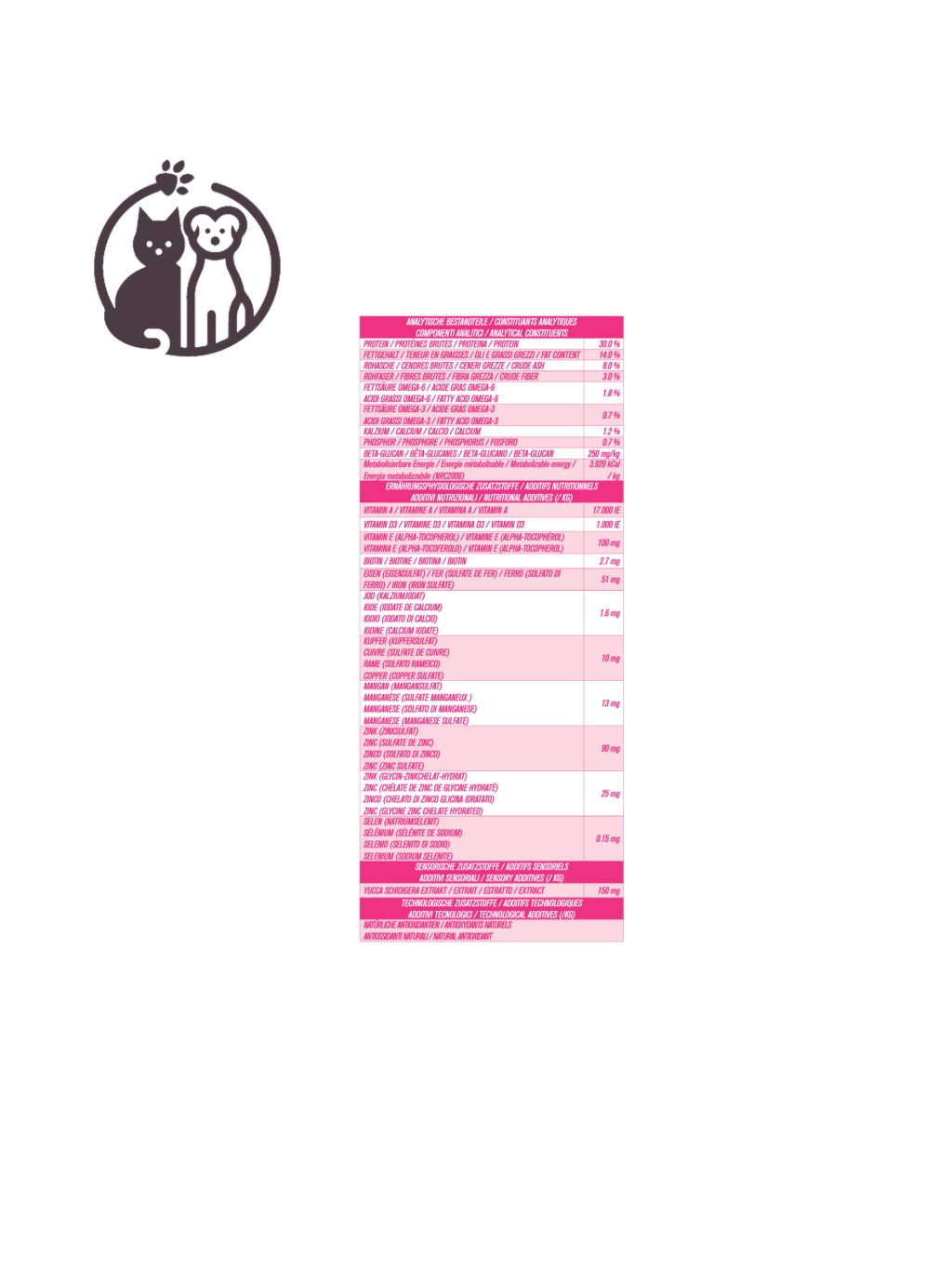 minimálně 28 % dehydrovaného vepřového masa jako kvalitní zdroj bílkovin.