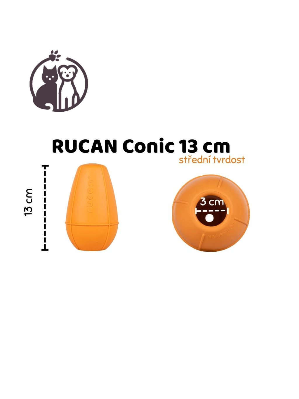 Rucan Conic (13 cm, oranžový) je kónická plnitelná hračka z přírodního kaučuku, navržená pro klidovou zábavu i mentální stimulaci. Naplněním dobrotami podporuje soustředění a zklidnění psa, střední tvrdost je šetrná k zubům a vhodná i pro citlivější nebo mladší psy.
