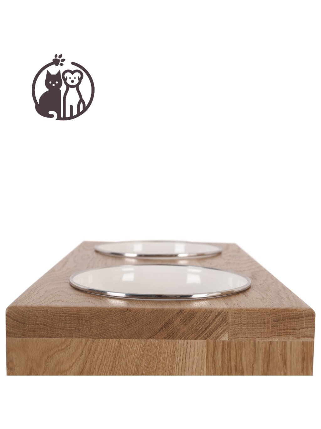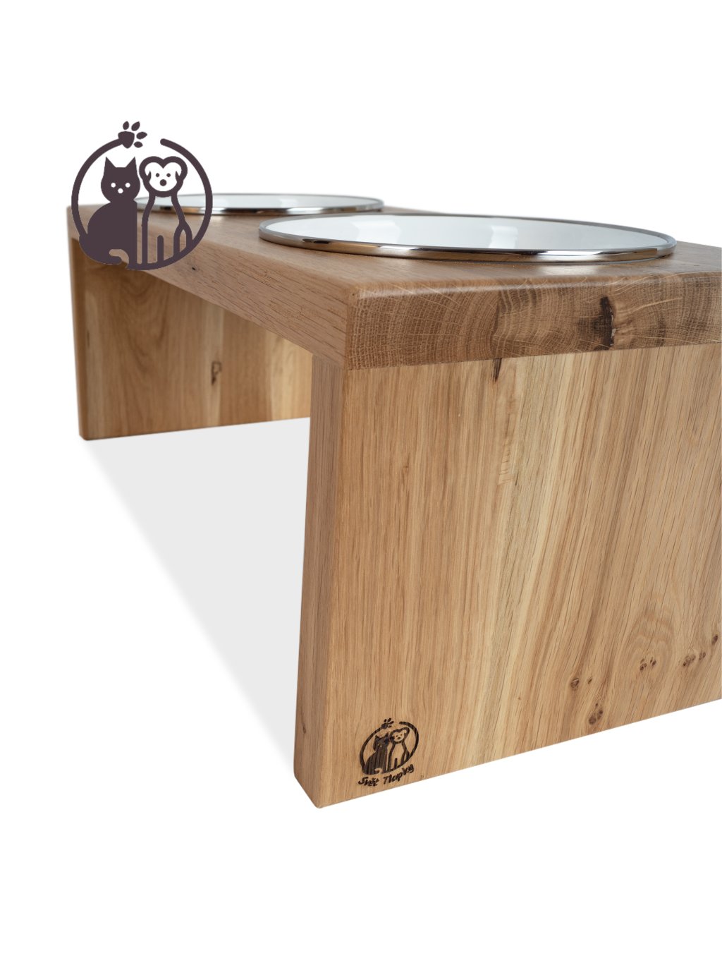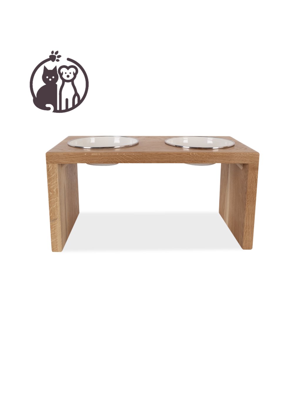 Stylový dřevěný stojan na dvě smaltované misky pro psy. Vyberte si typ dřeva a odstín, který nejlépe ladí s vaším interiérem, a zvolte rozměr ideální pro vašeho mazlíčka.
