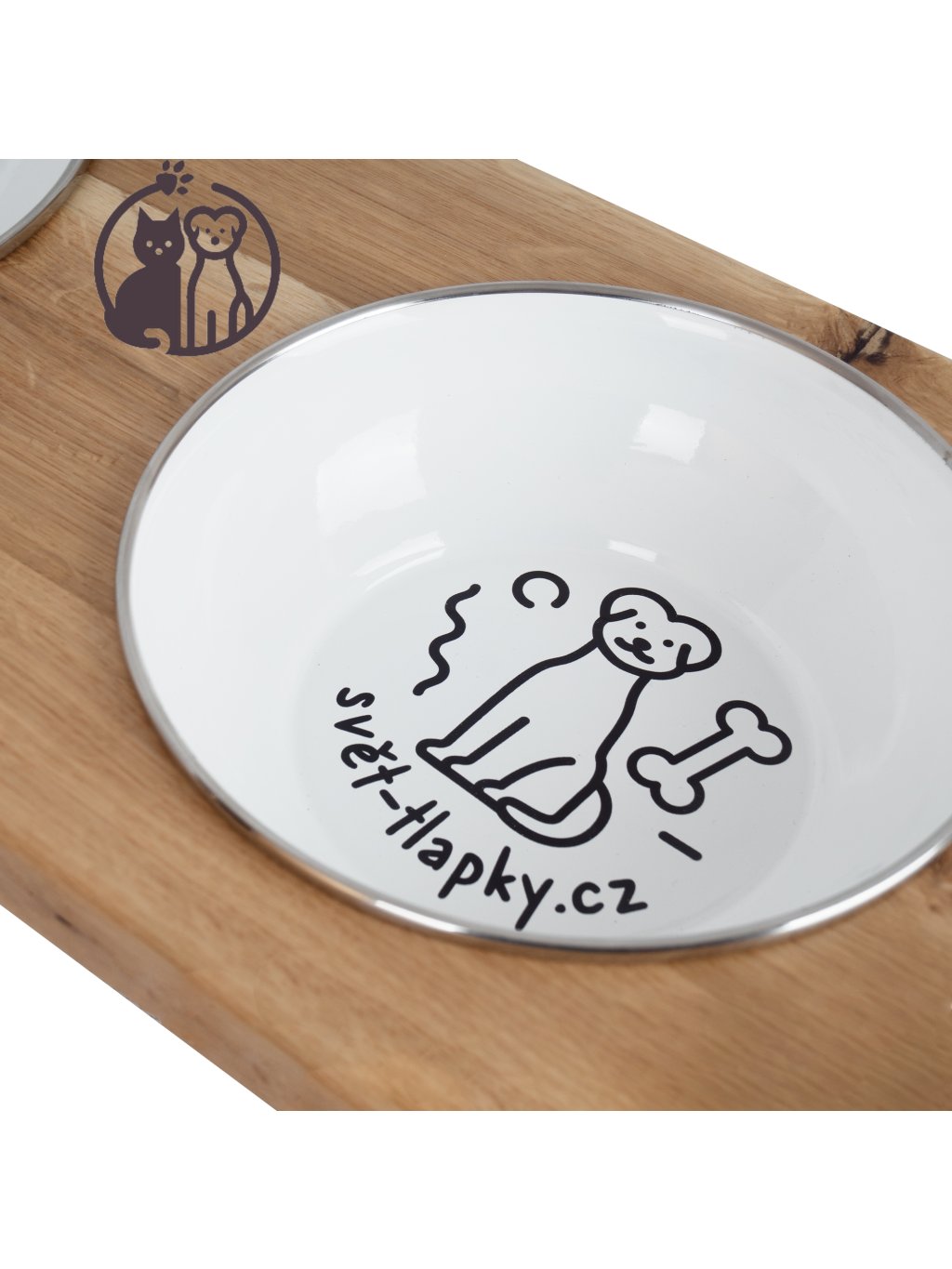 Elegantní dřevěný stojan na dvě smaltované misky je skvělou alternativou k nerezovým a keramickým miskám. Dodává dřevěnému stojanu jedinečný nadčasový vzhled, který rozzáří váš interiér. Misky jsou velmi praktické : dají se používat k vaření na sporáku, v troubě či dokonce na indukční ohřev. Vyjímatelné misky lze snadno mýt v myčce a díky speciálnímu těsnění se misky dobře usazují, tiše sedí a nepoškrábou se o dřevo. Povrch stojanu je chráněn kvalitním německým lakem splňujícím nejvyšší bezpečnostní standardy. Pro lepší odolnost stříkáme stojany dvakrát, takže se nemusíte obávat přetřít povrch stojanu vlhkým ubrouskem.